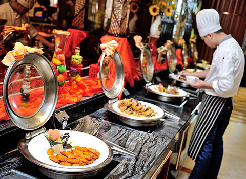 酒店擁有風(fēng)格迥異的各式餐廳:“世紀(jì)廳”大型宴會廳豪華典雅,是舉辦各類活動及婚宴、壽宴、滿月宴的首選; 32間中餐包廂富麗堂皇,是您宴請貴賓的理想去處,您可以品嘗到原汁原味的各式海鮮;大堂吧供應(yīng)價廉物美的各式飲品、茶點,是賓客休閑會友的好去處。